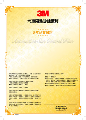 本公司為香港3M汽車隔熱玻璃薄膜建議施工商,特設無塵工作間並提供3M汽車隔熱玻璃薄膜五年品質保證;